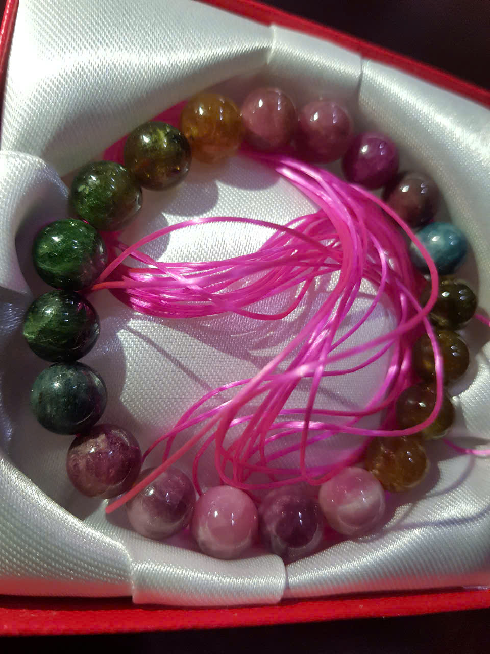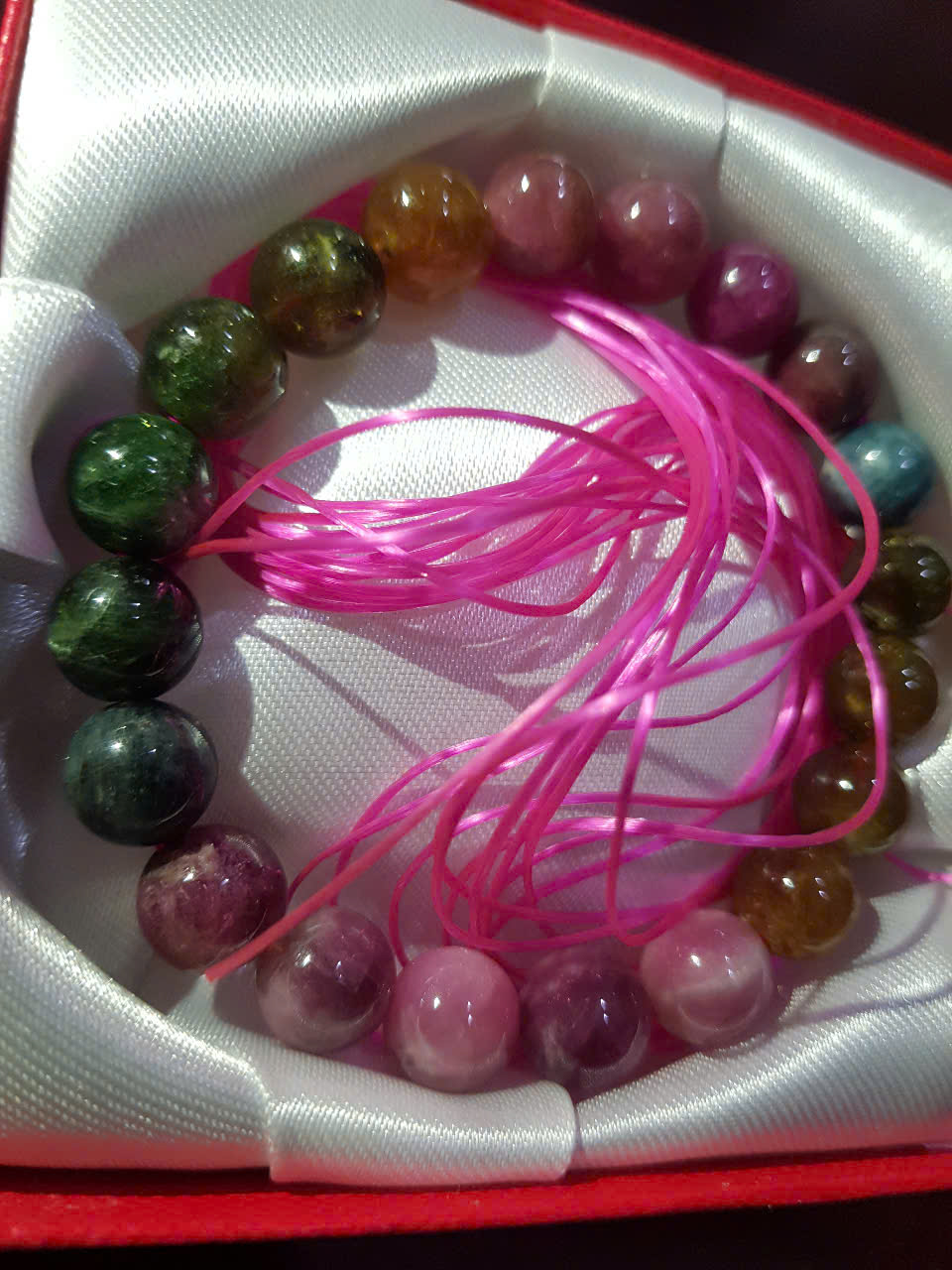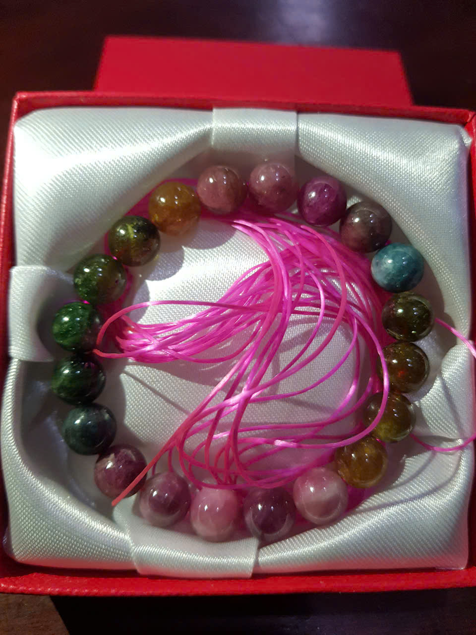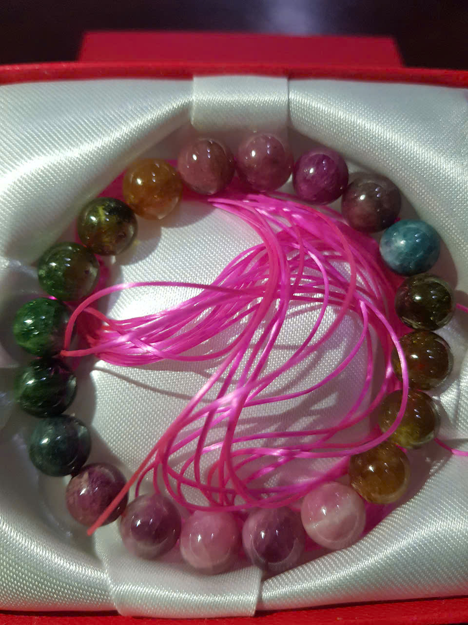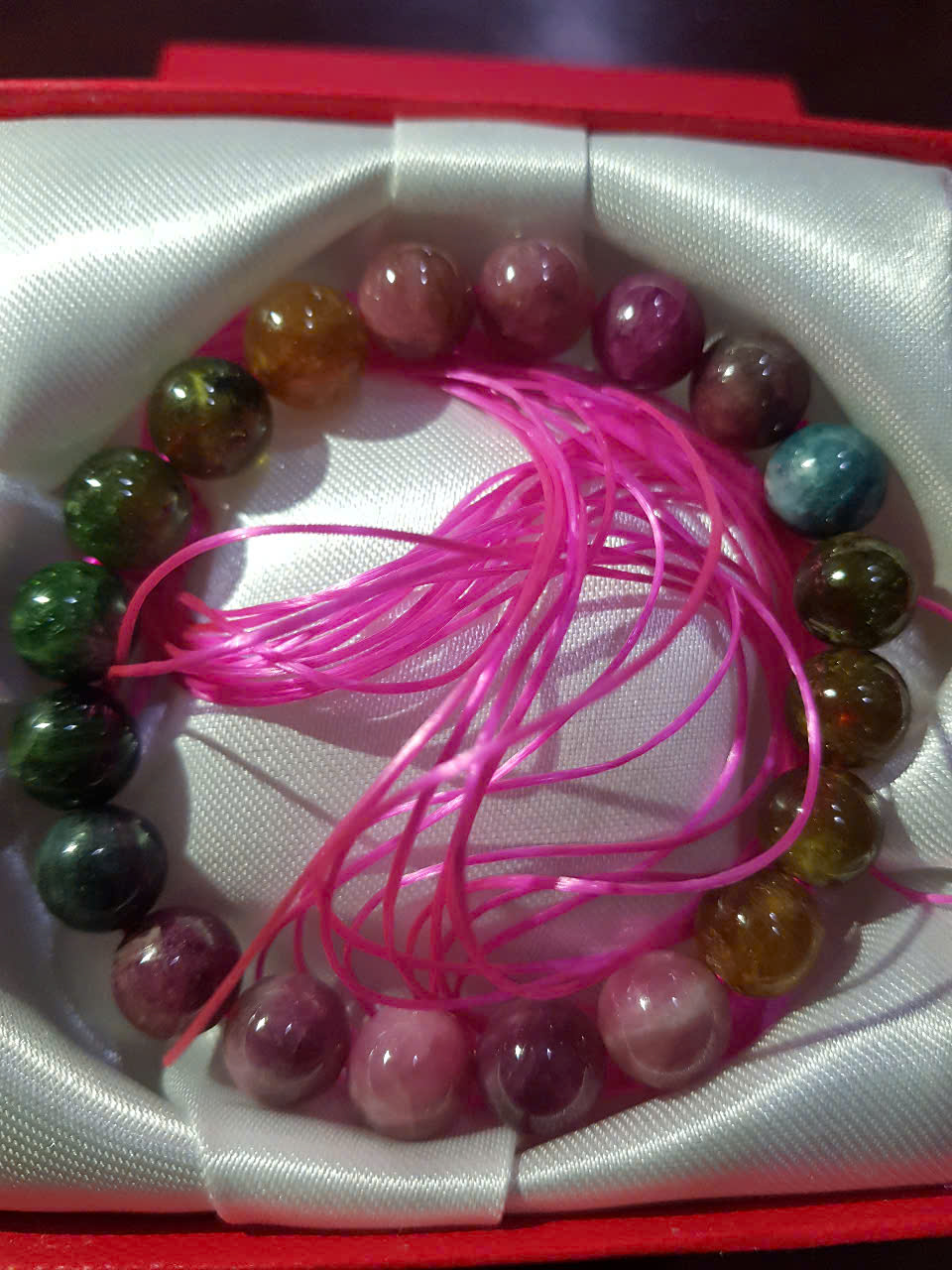 ✨Vòng tay Nữ tourmaline dâu tây tự nhiên đa sắc màu tươi đẹp thiệt sang size hạt 9,5mm vòng này hợp Nữ tất cả các mệnh đeo nhe ạ