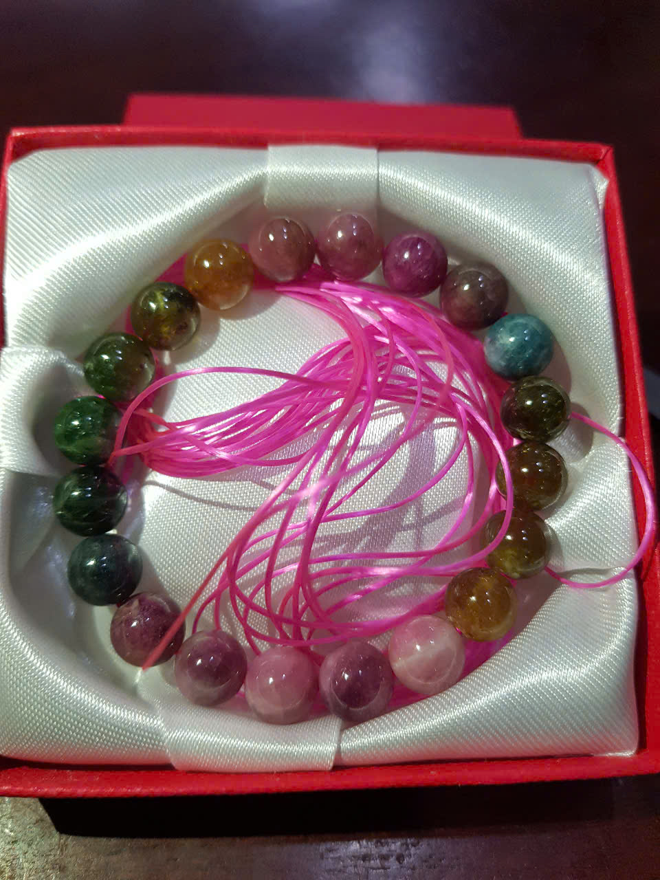 Vòng tay phong thuỷ may mắn đá tourmaline màu bóng đẹp lắm Size hạt vòng 8mm đá tự nhiên Vòng đá tự nhiên đeo tốt sức khoẻ, may mắn, tốt cho công việc đeo lên