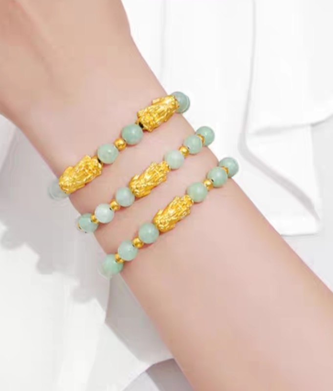 Vòng tay ngọc vàng gắn tỳ hưu may mắn giá sỉ 096 396 8838