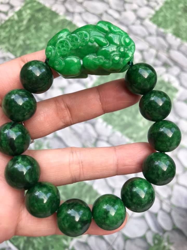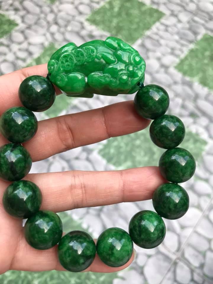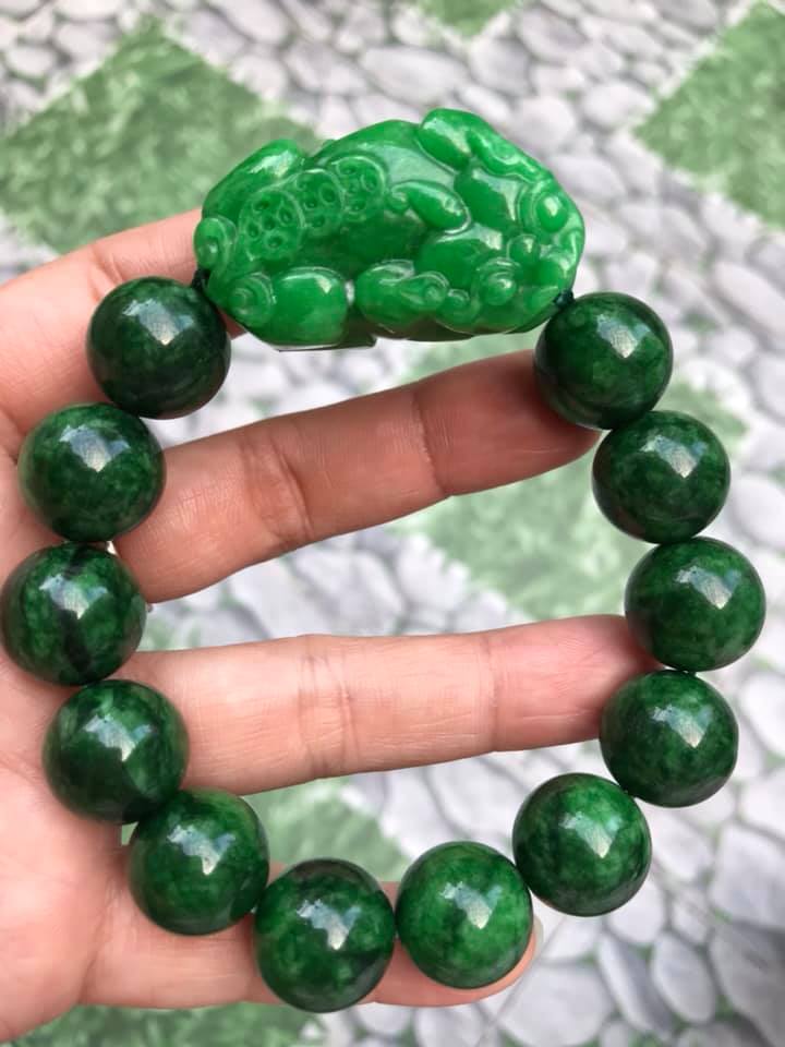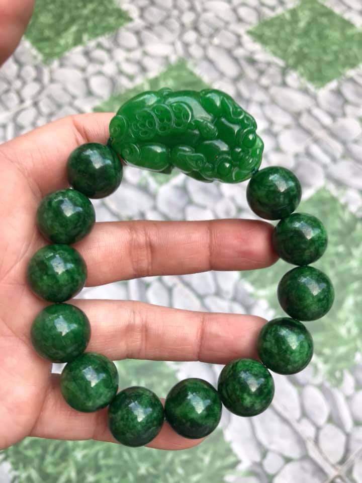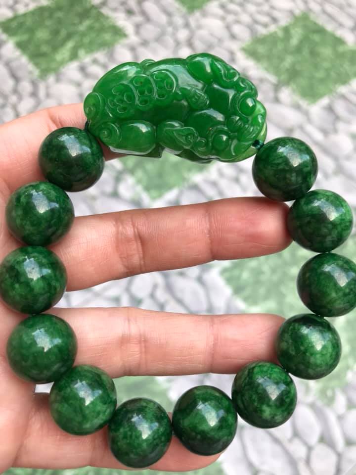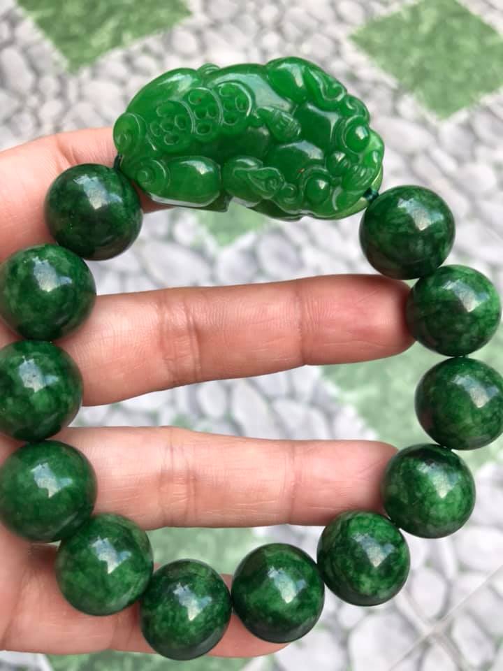 VÒNG TAY PHONG THỦY ĐÁ CẨM THẠCH XANH ĐẬM TỲ HƯU HÚT TÀI LỘC MAY MẮN VÒNG HỢP NAM MỆNH HỎA MỆNH MỘC ĐEO Ạ NAM TAY TO 75KG -90KG ĐEO MÀU XANH LÁ ĐẬM