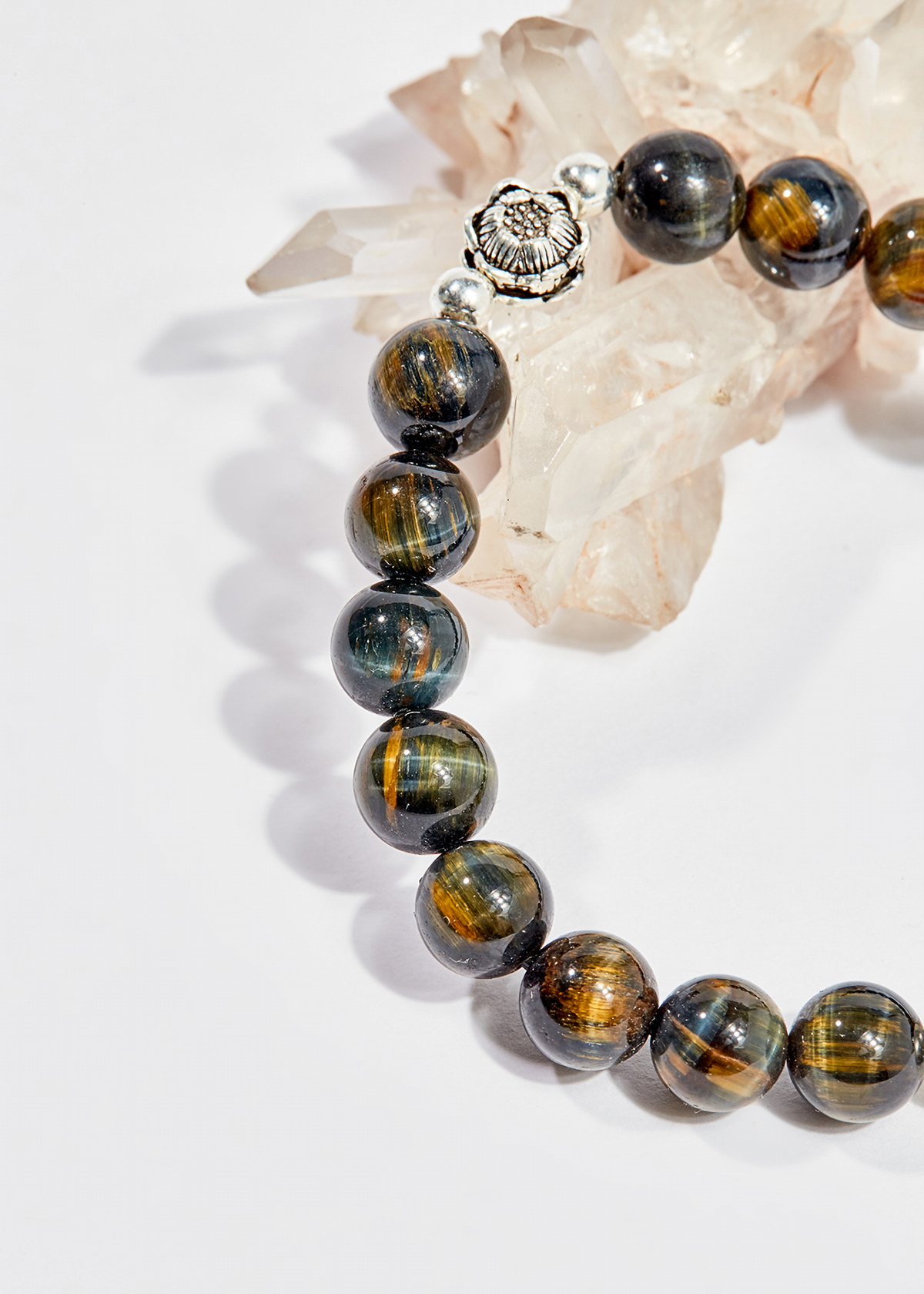 Vòng tay phongg thủy Mắt hổ vàng tâm 8mm + Thạch Anh Tóc nâu by Anqlo là sản phẩm được chế tác tinh xảo, có độ hoàn thiện cao bởi các nghệ nhân lâu năm