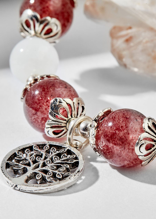 Ý nghĩa thạch anh dâu Thạch anh dâu tây đỏ vô cùng đặc biệt với những chấm hạt li ti như những hạt của quả dâu tây nên thạch anh lưu linh còn được gọi là thạch anh dâu tây. Thạch anh dâu tây đỏ là một loại đá rất đẹp trong dòng họ nhà Thạch Anh, được mệnh danh là “Thạch Anh tài lộc”Hơn nữa, tài lộc còn mang ý nghĩa rộng là khí vận tốt, may mắn, cơ hội tốt, những người bạn tốt, và quý nhân phù trợ Thạch Anh dâu tây đỏ giúp xoa dịu cơn giận dữ và lấy lại cảm xúc bình tĩnh. Màu sắc của nó mang đến một cảm giác cân bằng và hài hòa. Nó là loại đá của may mắn và cơ hội, người ta thường giữ chặt trong lòng 2 bàn tay khi hình dung tiền bạc hoặc may mắn sẽ tìm đến, như là một lời nguyện cầu linh nghiệm. Thạch Anh Dâu Đỏ  Là lá bùa giữ trạng thái vui sướng. Nó giúp cho con người ta tìm thấy đựợc tinh thần sảng khoái và đầu óc sáng suốt, tăng cường lạc quan và sự tự tin. Người ta còn cho rằng thạch anh lưu linh còn làm nảy sinh mối thiện cảm với nhau. Gia tăng cảm xúc và tình cảm Ý nghĩa và những lợi ích mà thạch anh ưu linh ban tặng. Đá thạch anh ưu linh không những có giá trị cao trong làm đồ trang sức, đây còn là một loại đá rất tốt cho sức khỏe và phong thủy. Chính vì vậy mà có rất nhiều người muốn lựa chọn loại đá này để sử dụng. Đá thạch anh ưu linh thường được chế tác thành vòng đeo tay hoặc mặt nhẫn, mặt dây chuyền đeo cổ để vừa làm đồ trang sức vừa làm vật phong thủy với nhiều ý nghĩa và tác dụng tốt trong sức khoẻ. Đá thạch anh ưu linh và Sức khỏe Không phải chỉ dừng lại ở những từ ngữ sáo rỗng mà đã có bằng chứng khoa học chứng minh rõ ràng những tác dụng tốt mà đá thạch anh ưu linh mang lại cho người dùng. Năng lượng trong đá thạch anh ám rêu được ví như viên thuốc kháng sinh có thể tăng cường hệ thống miễn dịnh giúp tăng sức đề kháng. Chống viêm nhiễm phục hồi nhanh các viết thương ngoài da. Đá thạch anh ưu linh còn có thể giúp bạn nâng cao sức khỏe, tăng tuần hoàn máu, giảm áp lực và ngăn ngừa các bệnh tật cũng như khả năng đột quỵ tốt cho những người lớn tuổi. Không những thế, đá thạch anh rêu còn được coi là một vật dụng vô cùng hữu hiệu trong việc giảm căng thẳng, trầm uất. Giúp người dùng có thể tăng khả năng tập trung có một đầu óc sáng suốt, nâng cao hiệu quả công việc cũng như trong cuộc sống hàng ngày. Ý nghĩa trong phong thủy Vòng Tay Thạch Anh dâu Mix Ưu Linh Trắng còn được ví như linh thạch giúp trí tuệ thông minh, minh mẫn giúp mọi quyết định đưa ra đều sáng suốt và mọi sự đều thành công như mong muốn. Riêng với những người kinh doanh hay buôn bán, thì việc sở hữu loại đá này sẽ làm cho công việc suôn sẻ, vượng khí, tài lộc ngày càng nhiều giúp việc kinh doanh được thuận buồm xuôi gió. Với những người thường xuyên có số mệnh xui xẻo hay gặp tai ương. Thì cũng nên sở hữu đá thạch anh ưu linh để giúp trách đi những việc phiền toái, lo âu. Từ đó chuyện xấu bị đẩy lùi và thay vào đó là mọi sự tốt đẹp gặp nhiều may mắn và phúc lộc. Cũng chính vì lẽ đó mà loại đá thạch anh ưu linh này luôn được coi là một trong những loại đá phong thủy cải thiện hay thay đổi vận mệnh cho người sở hữu nó, giúp họ độc lập, sáng suốt, dễ dàng trong mọi chuyện, tâm hồn trong sáng, cởi mở và phục hổi những tổn thương về mặt tâm hồn.