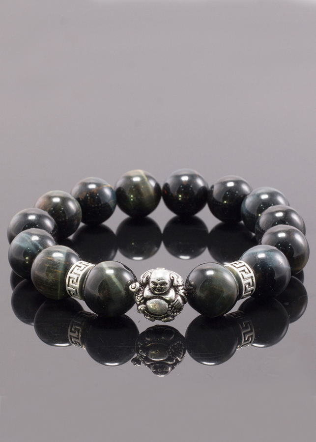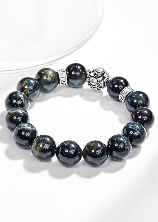- Vòng tay thạch anh mắt hổ xanh đen phối charm phật di lặc (12mm) mang lại sự tự tin, dũng khí và giúp cho con người quyết đoán hơn trong công việc, đem đến sự thành công.