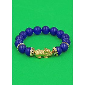 ✨Vòng tay Thạch Anh Xanh Dương 12 ly - cẩn Tỳ Hưu Phong Thủy inox vàng VTAXDTHBKV12