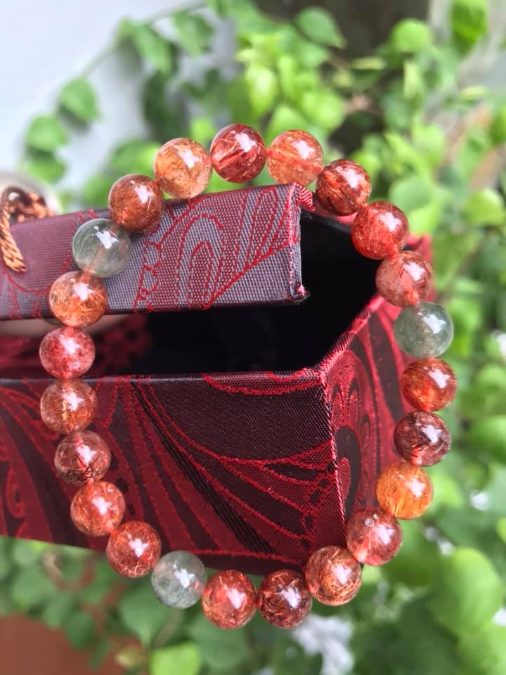 VÒNG TÓC ĐỎ THẠCH ANH ĐẸP SIZE 9MM NỮ mạng HOẢ THỔ ĐÁ THIÊN NHIÊN BẮT ÁNH KIM MẠNH