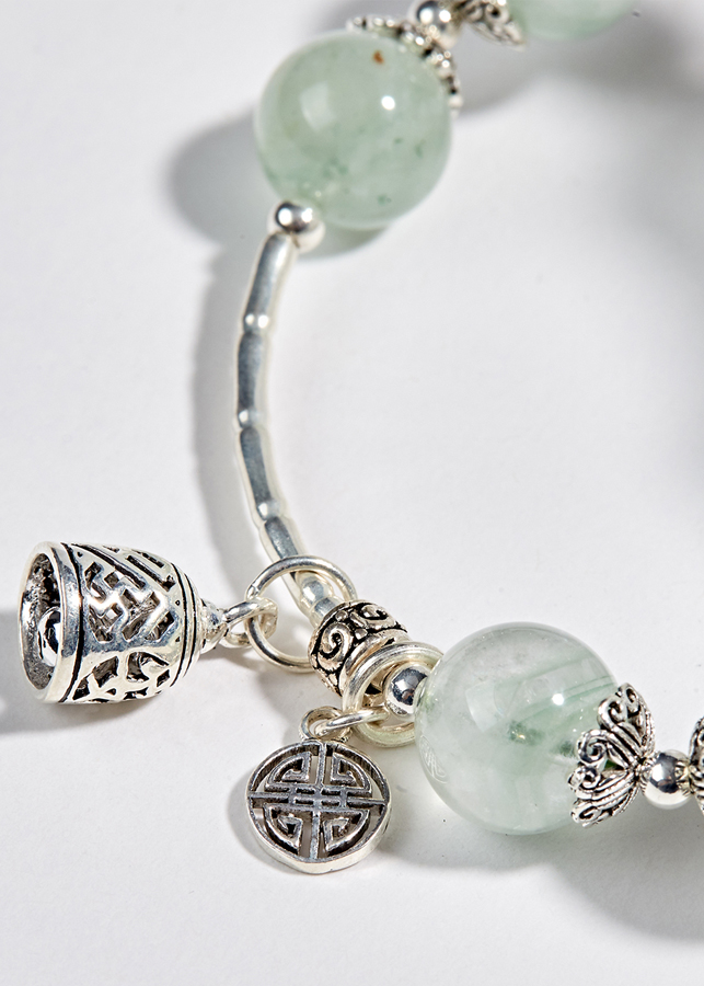 Vòng tay đá thạch anh tóc xanh phối charm bạc - Hợp mệnh mộc, hỏa | Ngọc Quý Gemstones |