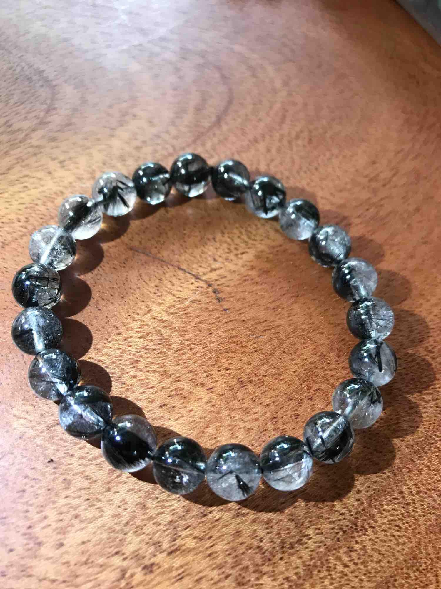 Vòng tay đá thạch anh tóc đen 16ly hợp mệnh Thuỷ-Mộc