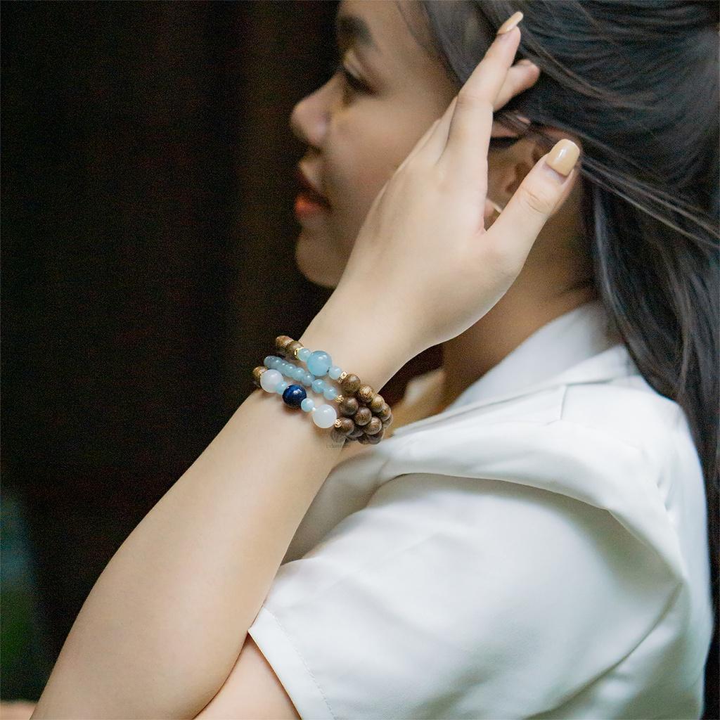 ✨Vòng trầm hương tự nhiên quấn 3 mix đá Aquamarine, mắt hổ xanh dương cao cấp chính hãng 2VTH031- UDUMBARA