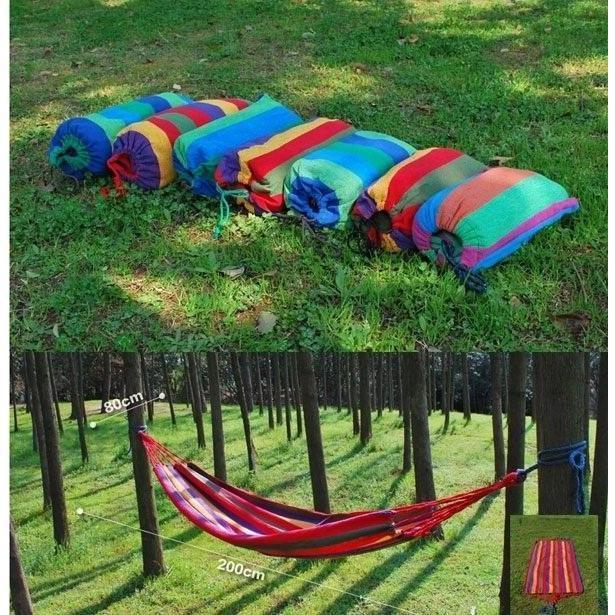 Sản phẩm võng du lịch dã ngoại kẻ sọc với thiết kế hai dây thừng 2 đầu, chắc chắn đảm bảo an toàn khi sử dụng đồng thời có thể dễ dàng buộc vào cây hoặc vật cứng, giúp bạn tận hưởng một chuyến du lịch một cách thú vị và độc đáo mà không tốn nhiều công sức.