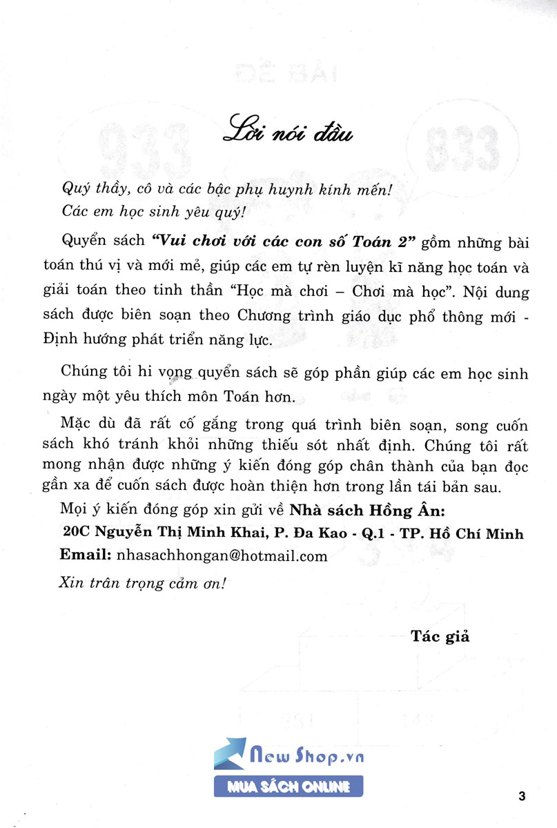 Cuốn Vui Chơi Với Các Con Số Toán 2 là tài liệu tham khảo giúp học sinh có điều kiện rèn luyện kiến thức và kĩ năng học tập môn Toán theo theo chương trình mới định hướng phát triển năng lực. Những bài tập trong sách được chọn lọc và sắp xếp theo yêu cầu phù hợp với Chương trình môn Toán, đồng thời bước đầu rèn luyện tính tích cực và lòng say mê học Toán của học sinh.