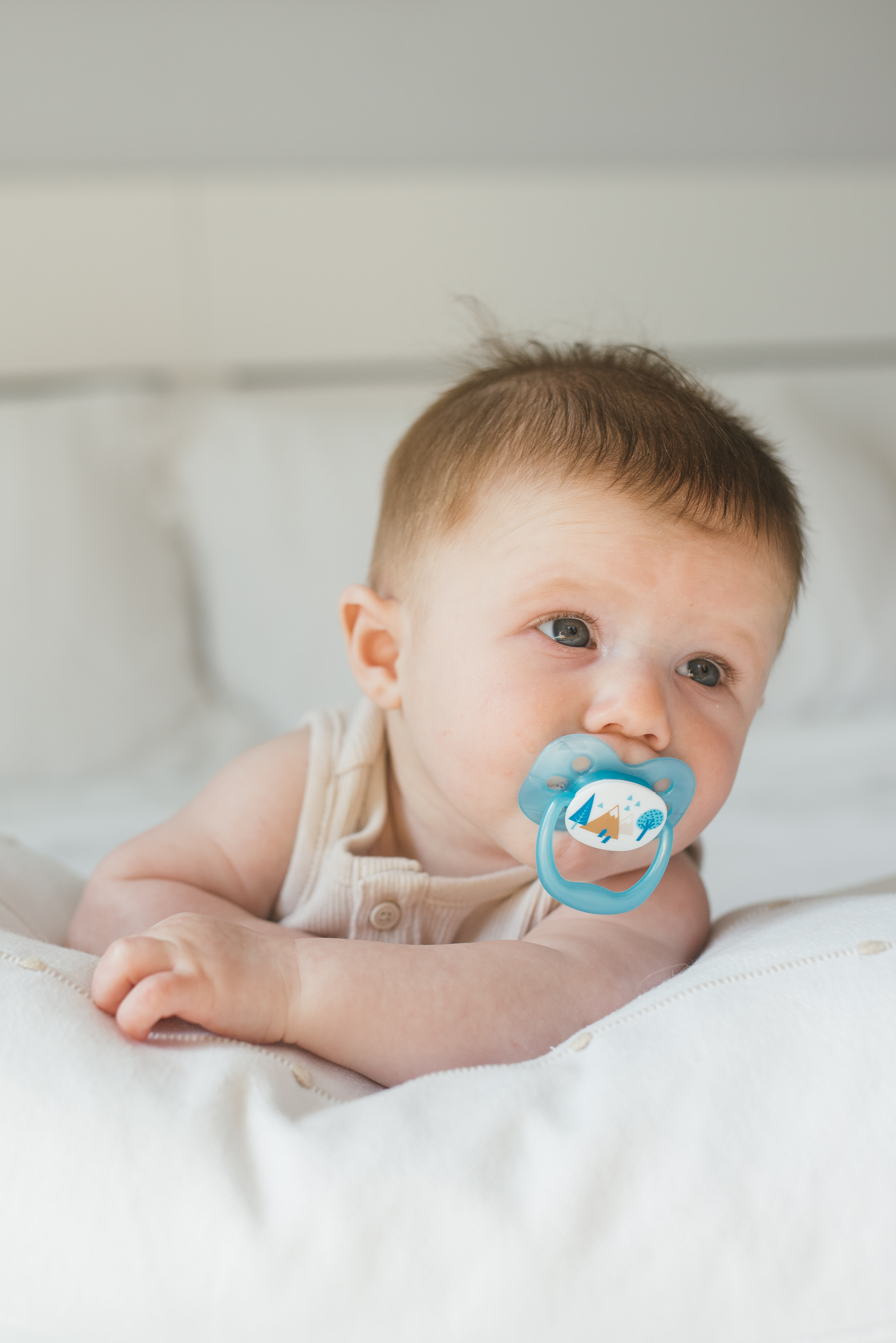 • Ty ngậm : Chất liệu silicone cao cấp, không chứa BPA, giảm thiểu áp lực lên hàm và răng của trẻ