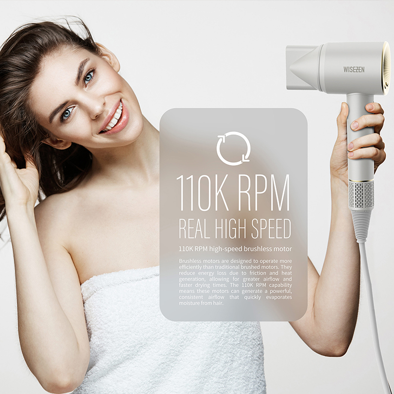 ✨WISEZEN HS1400 Máy sấy tóc tốc độ cao – Động cơ 110K RPM, trải nghiệm sấy khô nhanh.