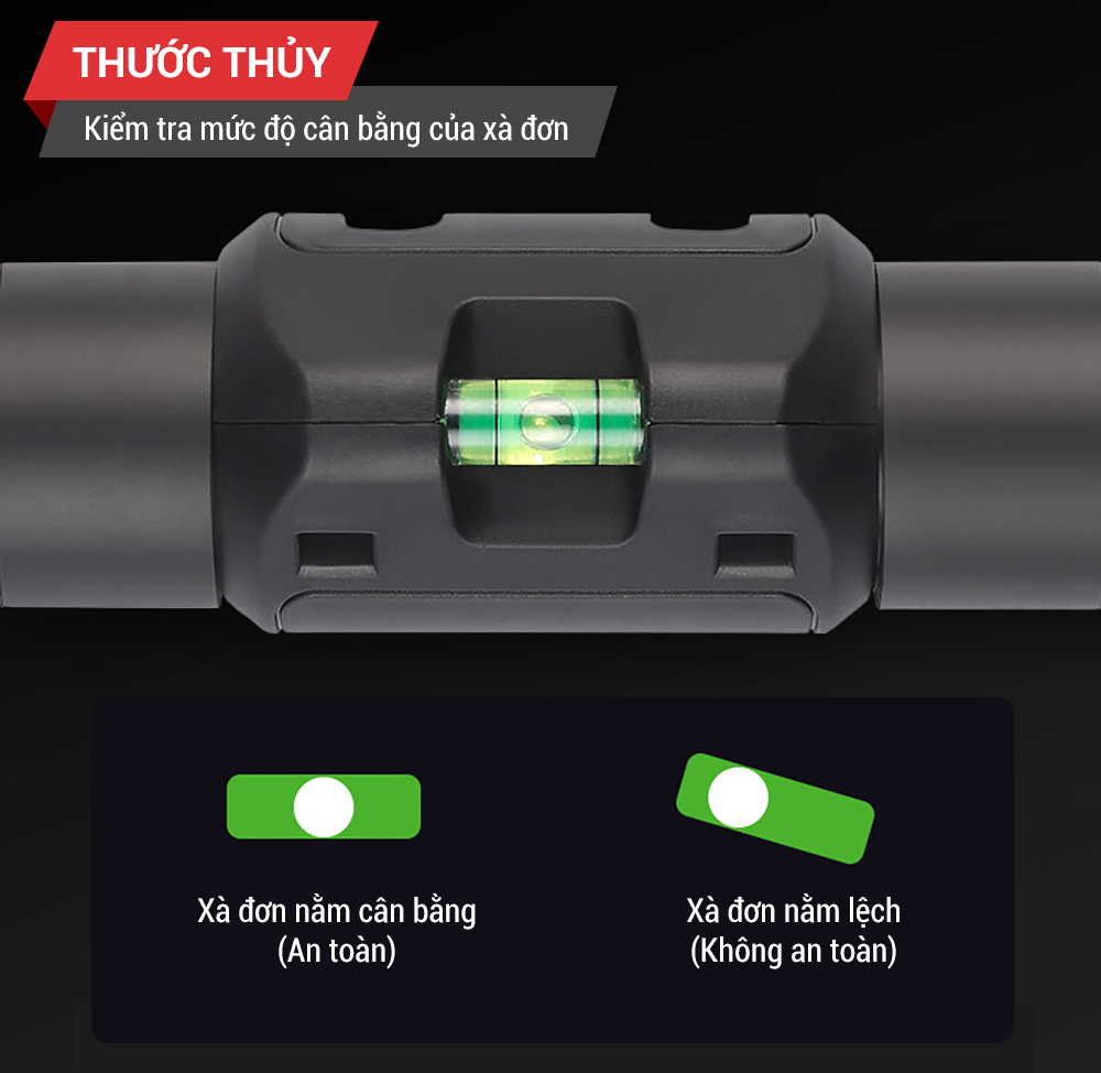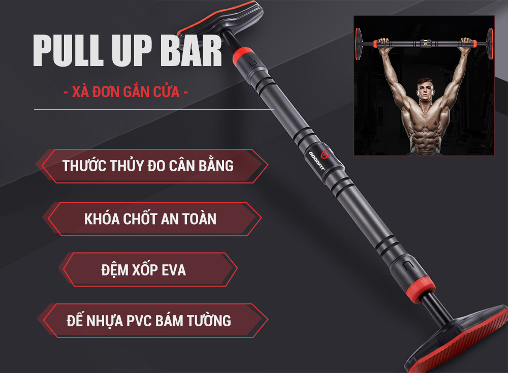 Mô Tả Sản Phẩm: Xà đơn gắn cửa treo tường Thăng Bằng có khóa chống xoay + Nivo cân bằng xà THANH TẬP XÀ ĐƠN TREO TƯỜNG THĂNG BẰNG - Màu sắc: Đen + đỏ.