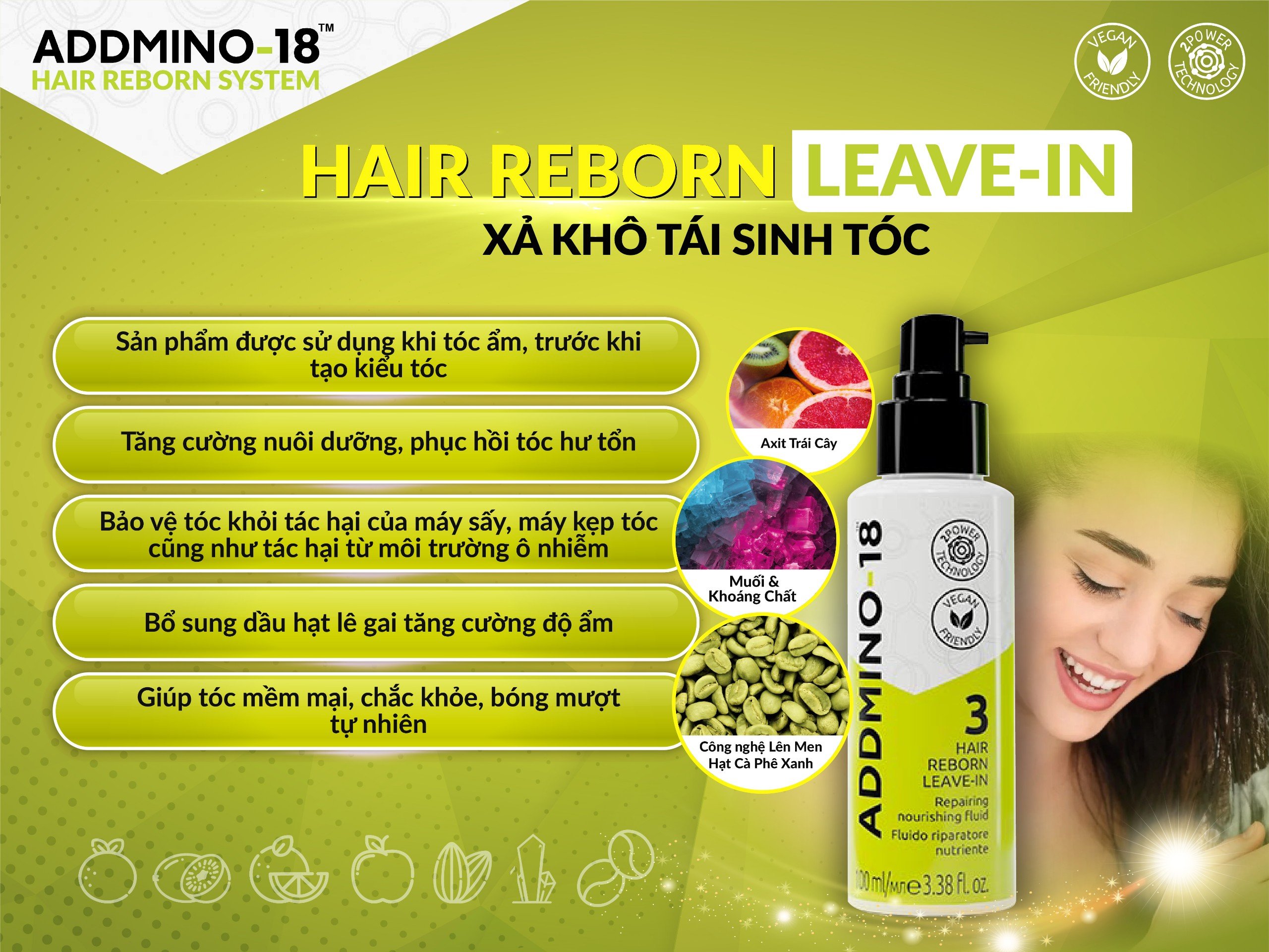 ✨XẢ KHÔ TÁI SINH TÓC - 100ML (Addmino - 18 3 Hair Reborn Leave - In)