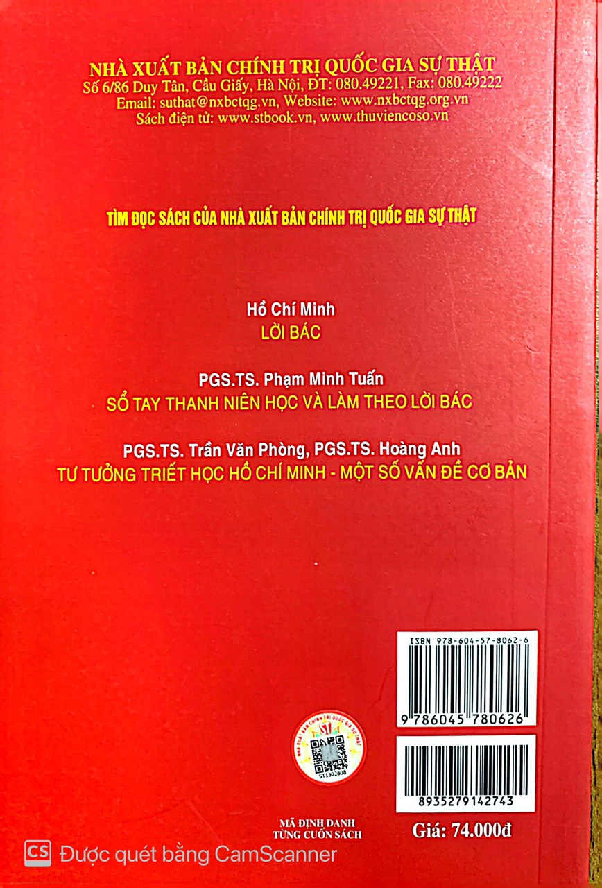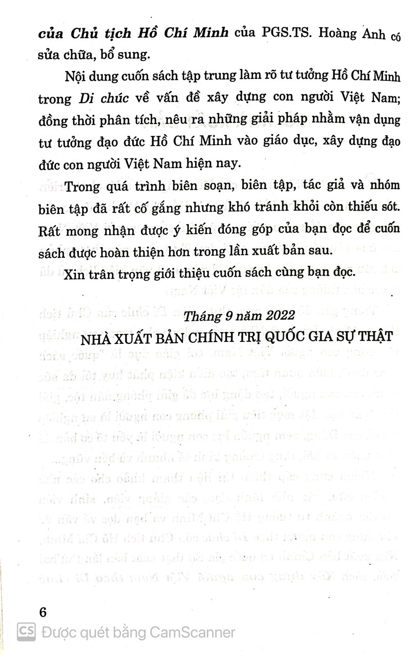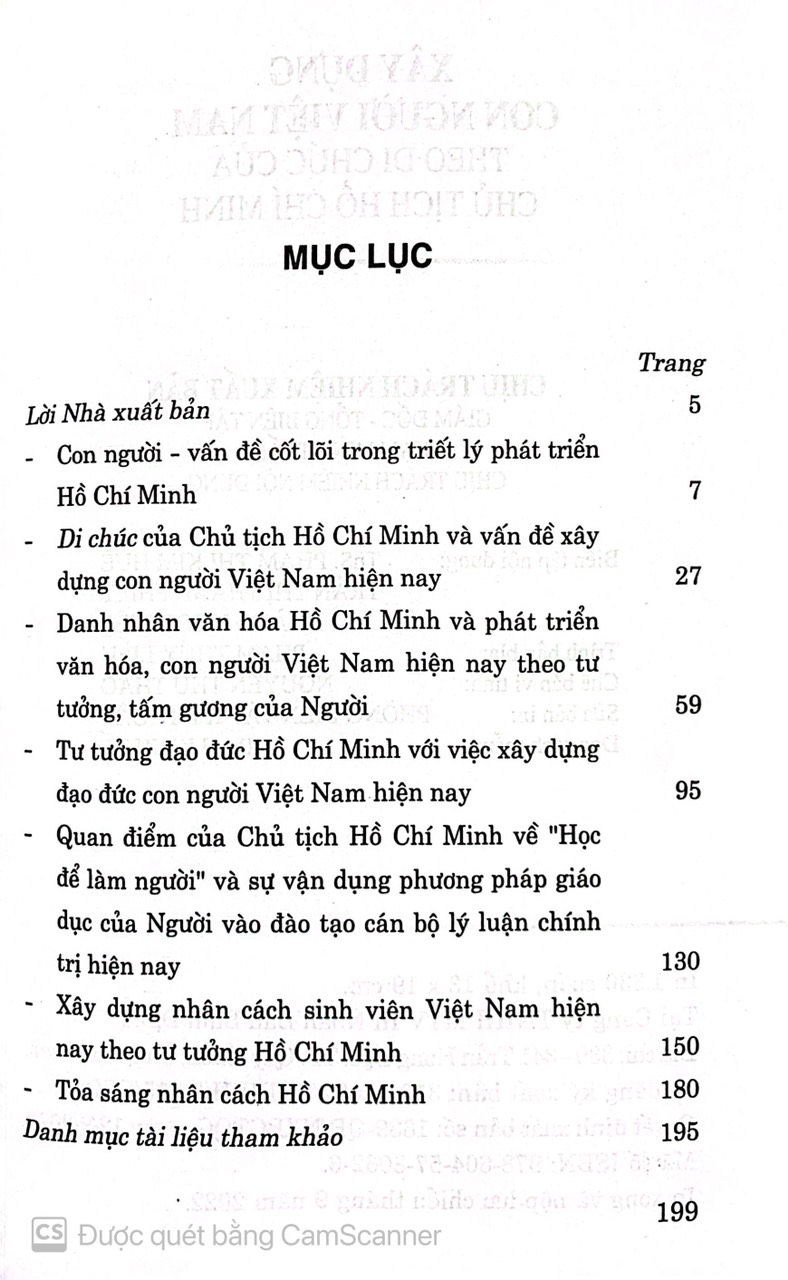 Mua tại TiktokTác giả: Năm xuất bản: Số trang: Nội dung cuốn sách tập trung làm rõ tư tưởng Hồ Chí Minh trong Di chúc về vấn đề xây dựng con người Việt Nam; đồng thời phân tích, nêu ra nhưỡng giải pháp nhằm vận dụng tư tưởng, đạo đức Hồ Chí Minh vào giáo dục, xây dựng đạo đức con người Việt Nam hiện nay.