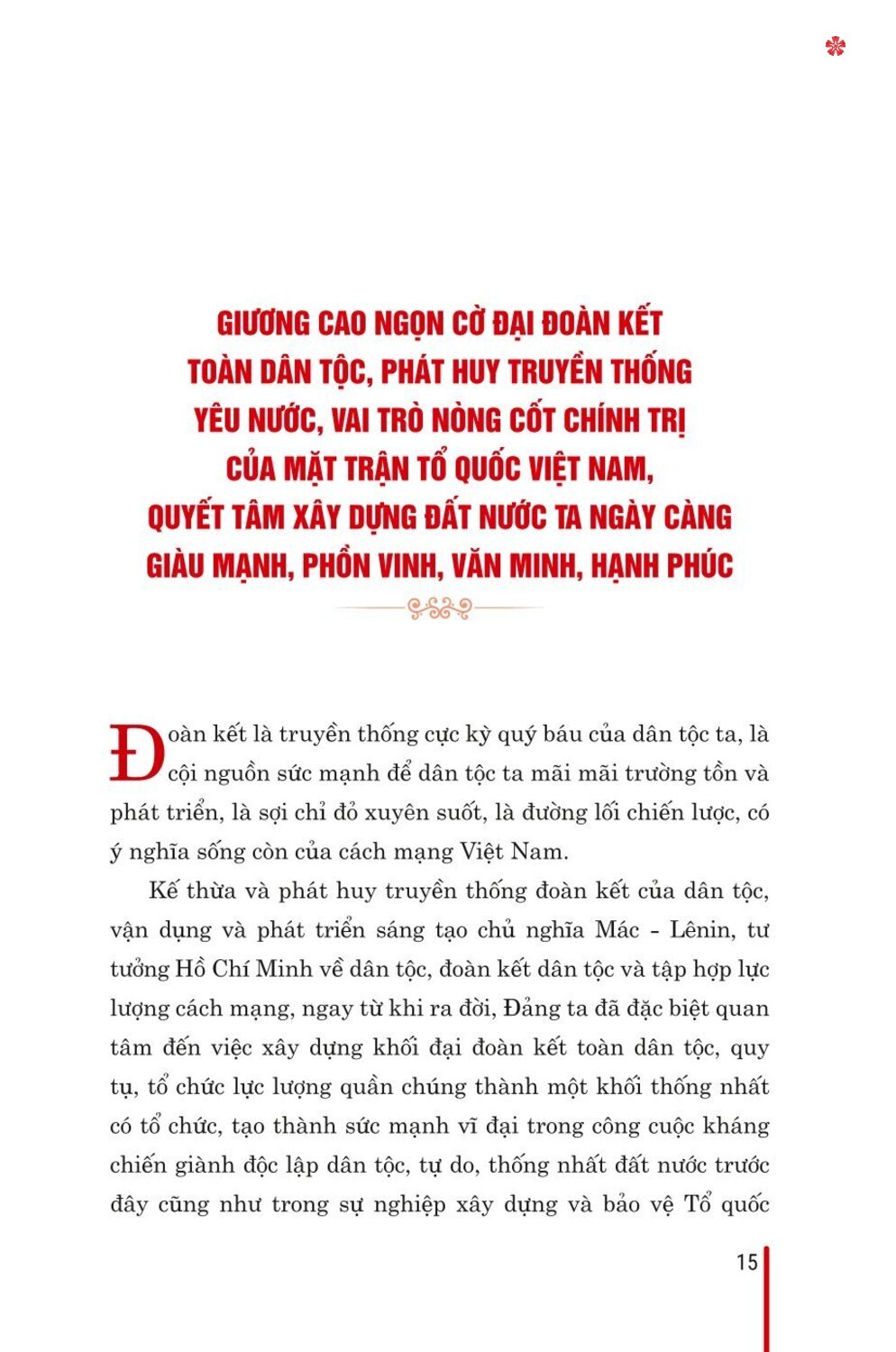 Cuốn sách thể hiện tư duy nhất quán của người đứng đầu Đảng ta về đại đoàn kết toàn dân tộc, vấn đề được xác định là đường lối chiến lược của Đảng ta, nhân