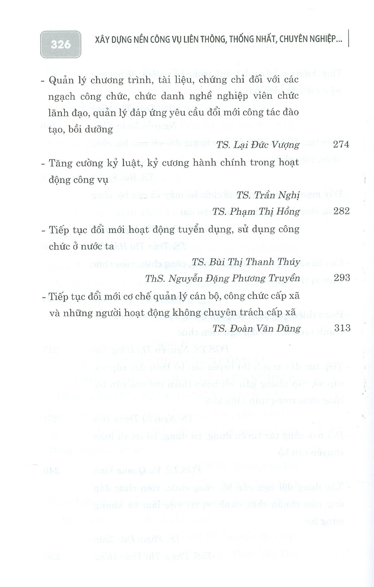 Cuốn sách gồm 23 bài viết của các nhà khoa học, nhà nghiên cứu, nhà quản lý đã phân tích, luận giải những vấn đề đặt ra đối với nền công vụ Việt Nam hiện nay và yêu cầu đổi mới, nâng cao hiệu quả hoạt động của nền công vụ, trên cơ sở đó, các tác giả đề xuất phương hướng, giải pháp nhằm tiếp tục xây dựng nền công vụ liên thông, thống nhất, chuyên nghiệp, trách nhiệm, năng động và thực tài, đáp ứng yêu cầu phát triển đất nước trong giai đoạn hiện nay, tầm nhìn đến năm 2030 và năm 2045.