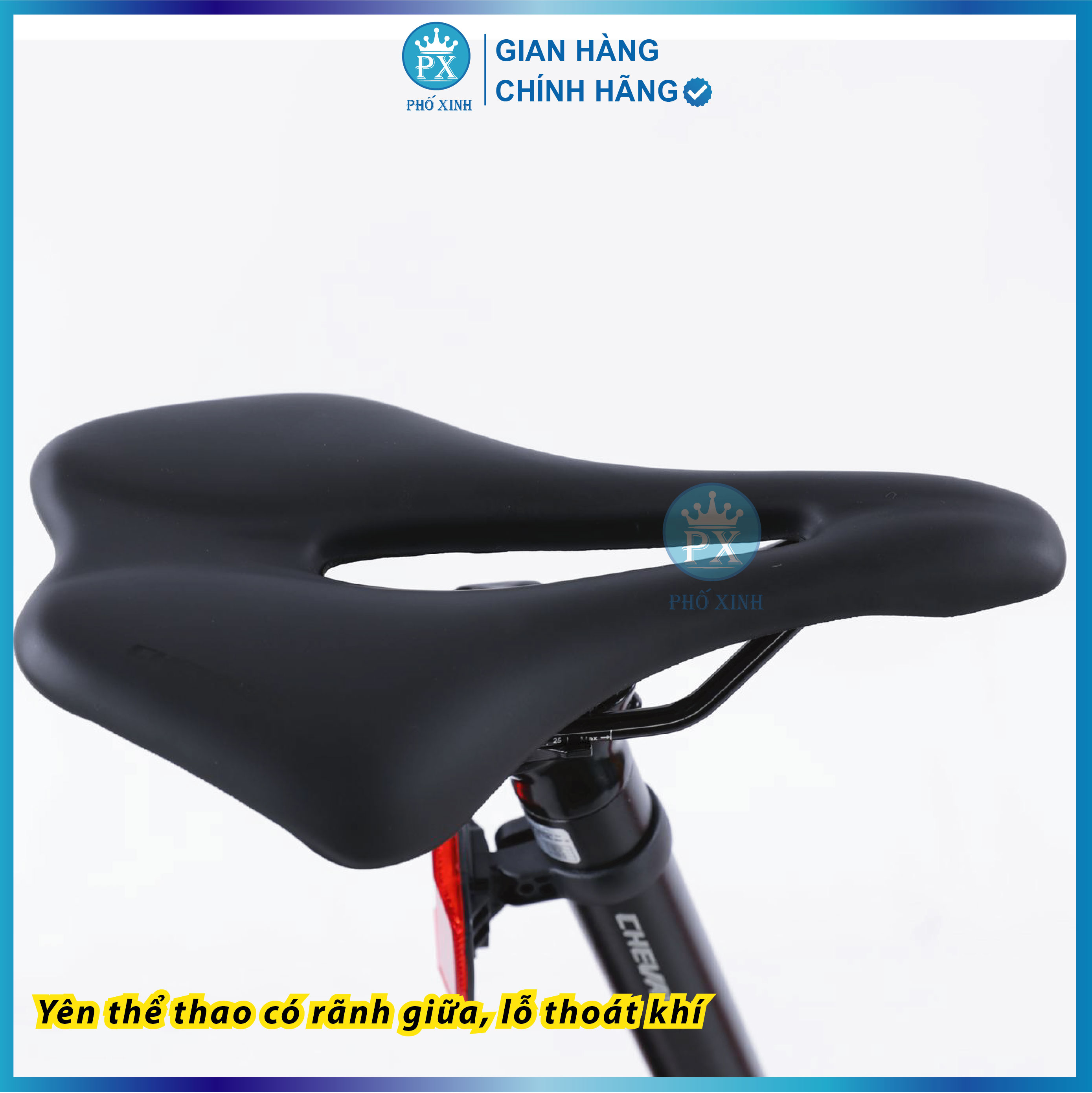 Yên được làm nệm mút cao cấp, êm ái. Cọc yên hợp kim chắc chắn mang lại cảm giác thoải mái cho người đạp xe khi di chuyển những cung đường dài, gập ghềnh.