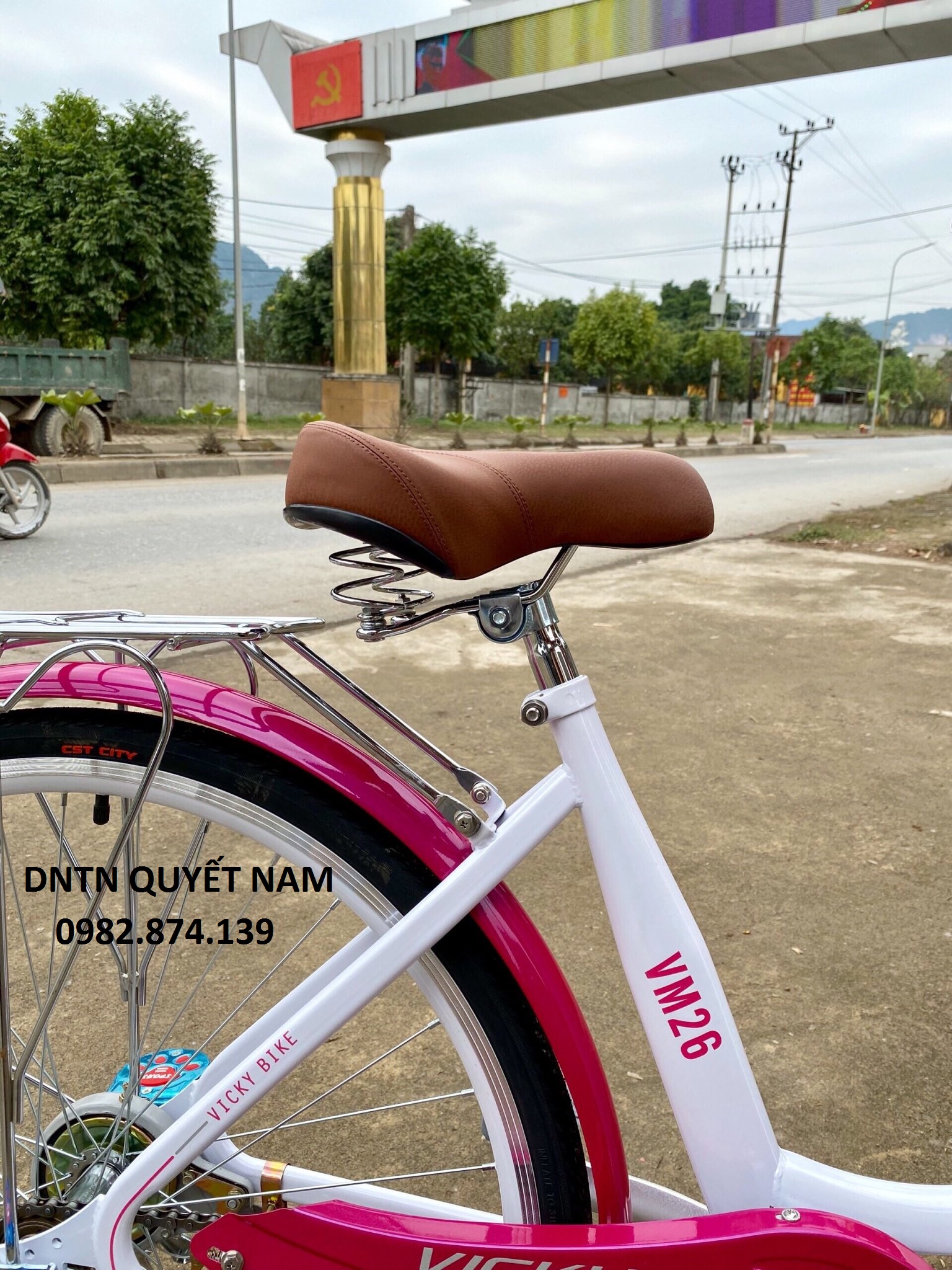 Xe đạp VICKY Lady là mẫu xe nhập khẩu nguyên chiếc với chất lượng ổn định và giá rẻ nhất phân khúc nên được rất nhiều khách hàng tin tưởng lựa chọn . Xe sử dụng khung thép sơn