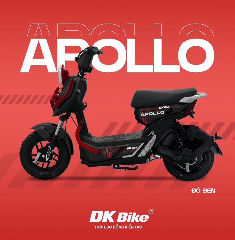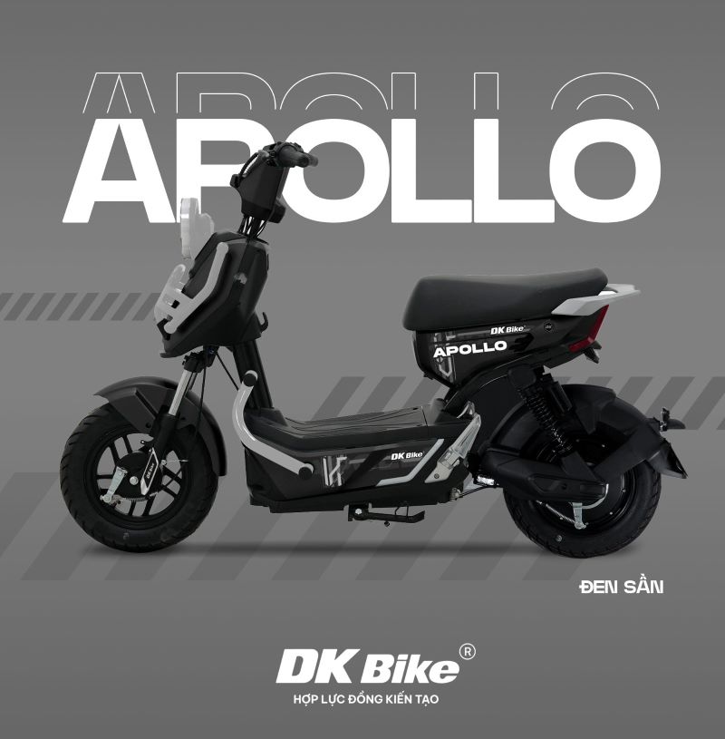 Mua tại TiktokTính năng nổi bật của xe đạp điện DK Apollo Xe đạp điện DK Apollo là dòng sản phẩm mới sở hữu nhiều ưu điểm vượt trội về cả thiết kế và khả năng di chuyển như: Linh kiện nổi bật Khu vực sàn để chân rộng rãi, được lắp đặt thêm khung sườn để chân ở 2 bên tăng độ thoải mái, cho phép người dùng đa dạng tư thế ngồi. Đèn pha thiết kế cách điệu độc đáo. Đèn bi led ánh sáng mạnh và tập trung, độ chiếu sáng tốt. Mặt đồng hồ điện tử LCD sắc nét, hiển thị rõ ràng, trình bày thông số đẹp mắt và logic, dễ dàng nắm bắt thông tin. Yên xe chất liệu cao su có độ rộng vừa vặn, độ bền cao, thoải mái khi ngồi Lốp không săm cao cấp, có nhiều đường vân rãnh hạn chế trượt bánh