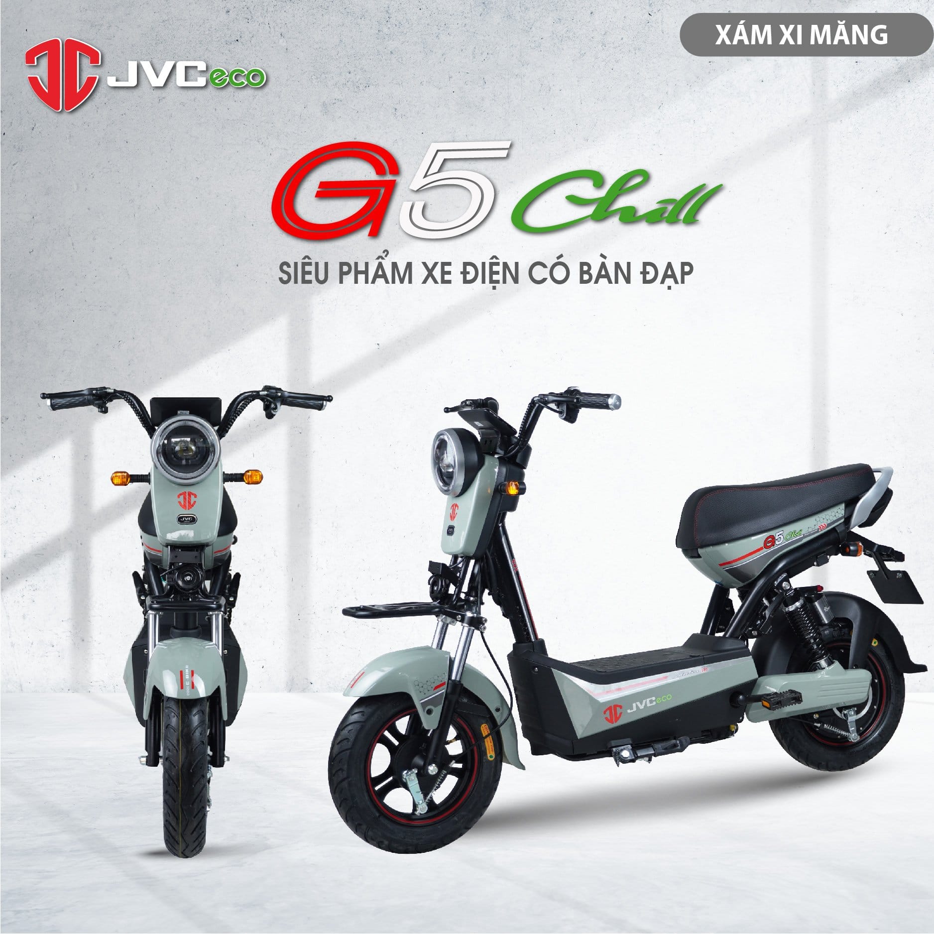 JVC G5 CHILL XE ĐIỆN CÓ BÀN ĐẠP ️ JVC G5 CHILL được thiết kế theo phong cách HIỆN ĐẠI, TINH TẾ mang tới sự tự tin cho người lái ƯU ĐIỂM NỔI BẬT CỦA JVC G5 CHILL Bàn đạp trợ lực hỗ trợ hành trình di chuyển Bộ tem mới thiết kế THỜI TRANG Đèn pha dạng tròn góc sáng rộng hơn Tay ga, công tắc, tay phanh cao cấp đến từ thương hiệu Wuxing Đồng hồ dẹt hiển thị thông minh Yên xe êm ái in dấu ấn logo JVC Động cơ mới kết hợp với bộ điều khiển không dây Ắc quy được bổ sung thanh giằng bình chắc chắn tuyệt đối, tháo lắp dễ dàng hơn Vành trước nhập khẩu có thiết kế riêng biệt đồng bộ với động cơ Giam xóc sau nâng cấp chất lượng, bảo hành 12 tháng Động cơ và khung xe bảo hành 36 tháng Bình ắc quy bảo hành 18 tháng