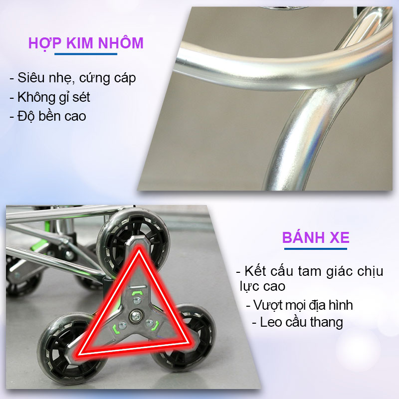XE KÉO ĐI CHỢ 6 BÁNH LEO CẦU THANG, GẤP GỌN TIỆN DỤNG NIKITA - Là sản phẩm nâng cấp của dòng xe đi chợ inox 1940. Được nâng cấp phần bánh xe từ