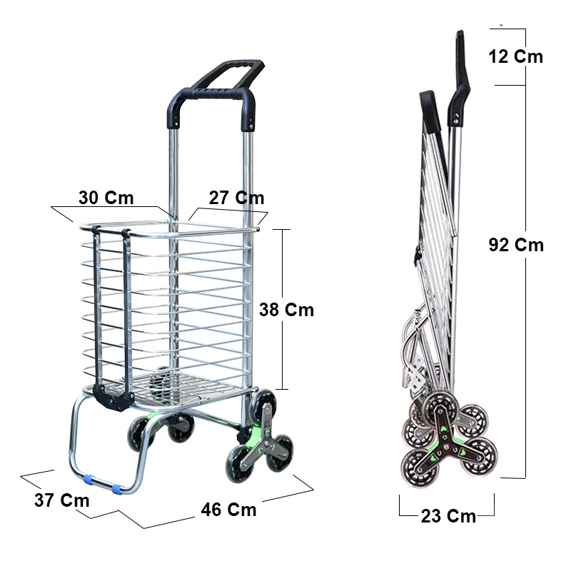 Xe đẩy hàng gấp gọn leo cầu thang 6 bánh, xe kéo hàng gấp gọn gia đình đa năng giá rẻ Xe kéo hàng gấp gọn có thể chịu lực đến 80kg. Được làm từ