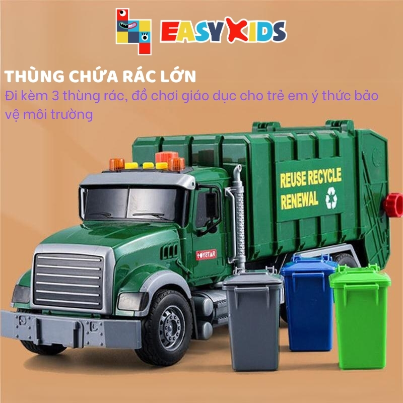 Xe Rác Đồ Chơi, Xe Chở Rác Đổ Rác Cỡ Lớn Cho Bé Có Đèn Nhạc