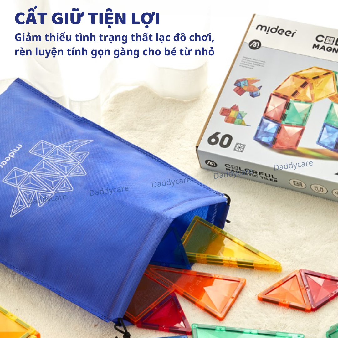 ✨Xếp Hình Nam Châm Ánh Sáng Colorful Magnetic Tiles Mideer Daddycare, nam châm lắp ghép thông minh cho bé 3,4,5,6 tuổi