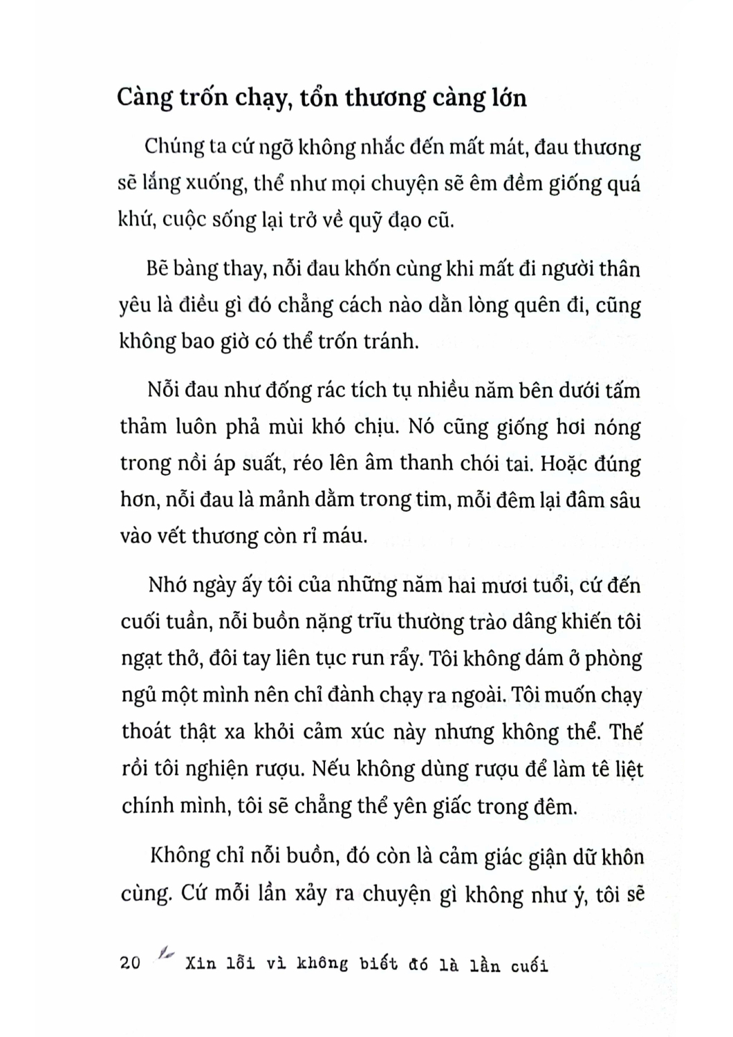 Mua tại TiktokXin Lỗi Vì Không Biết Đó Là Lần Cuối “Sống tốt chính là lời hứa với chính mình: Dù trải qua bao nhiêu mất mát cũng phải sống thật tốt!” Sinh, lão, bệnh, tử là quy luật tất yếu, xin đừng quá đau buồn ư? Không. Khi người thân qua đời, làm sao chúng ta có thể không đau buồn? Mỗi lần đối diện với mất mát, nỗi cồn cào xót xa sẽ như dòng chảy ngầm trong tim, nhưng nó không đáng bị chặn lại mà nên được tuôn chảy một cách tự nhiên. Để “con đập” cảm xúc của chúng ta không dễ dàng vụn vỡ, hãy cứ cho phép nỗi buồn đau được hiện hữu dưới bất kỳ trạng thái nào. Bởi mỗi nỗi đau đều là một và duy nhất trên đời. Cũng chỉ có chính chúng ta mới chữa lành được những vụn vỡ bên trong mình. Cho phép bản thân được đau buồn nhưng xin đừng chết trong cái kén đó. Bạn à, chúng ta đều xứng đáng được sống những ngày tháng tốt đẹp. “Xin bạn hãy sống thật tốt, trân trọng cuộc đời này, vì tất cả yêu thương thiết tha bạn từng có và đã mất đi.”