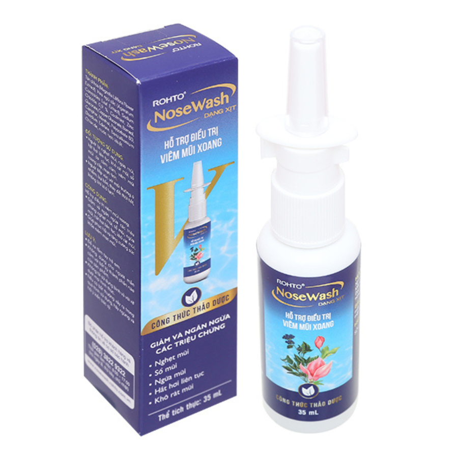 - Xịt mũi viêm xoang thảo dược Rohto Nosewash giúp phục hồi và tăng cường sức khỏe niêm mạc mũi.