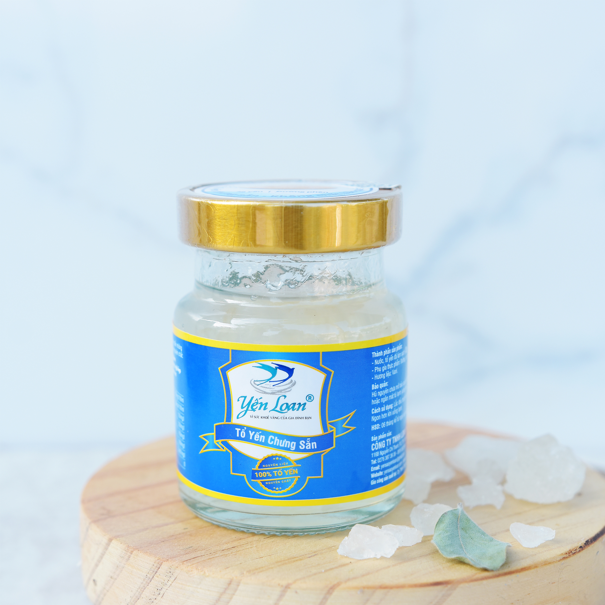 Yến Loan – Yến hũ - 3g yến/hũ chưng sẵn với Đường phèn KHÔNG CHẤT BẢO QUẢN được làm 100% từ yến nguyên chất, được khai thác và chế biến trực tiếp tại công ty.